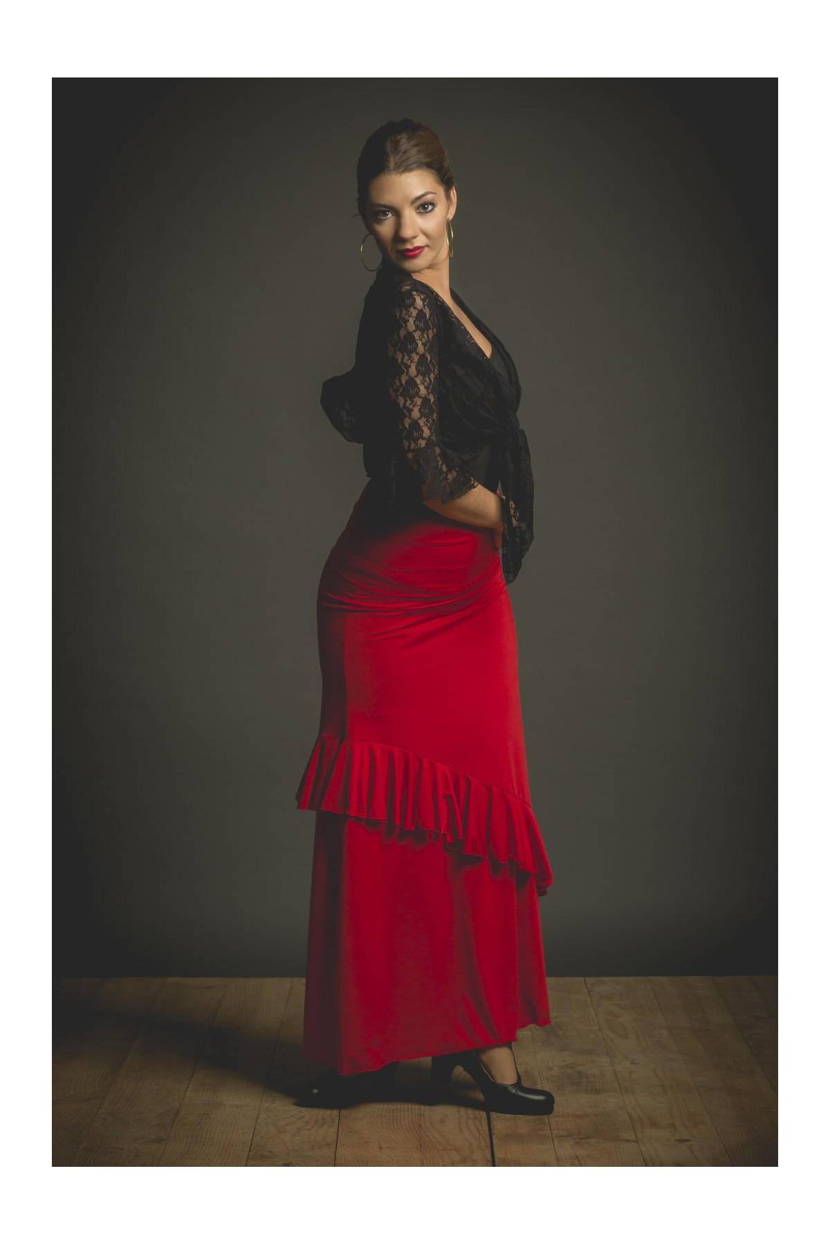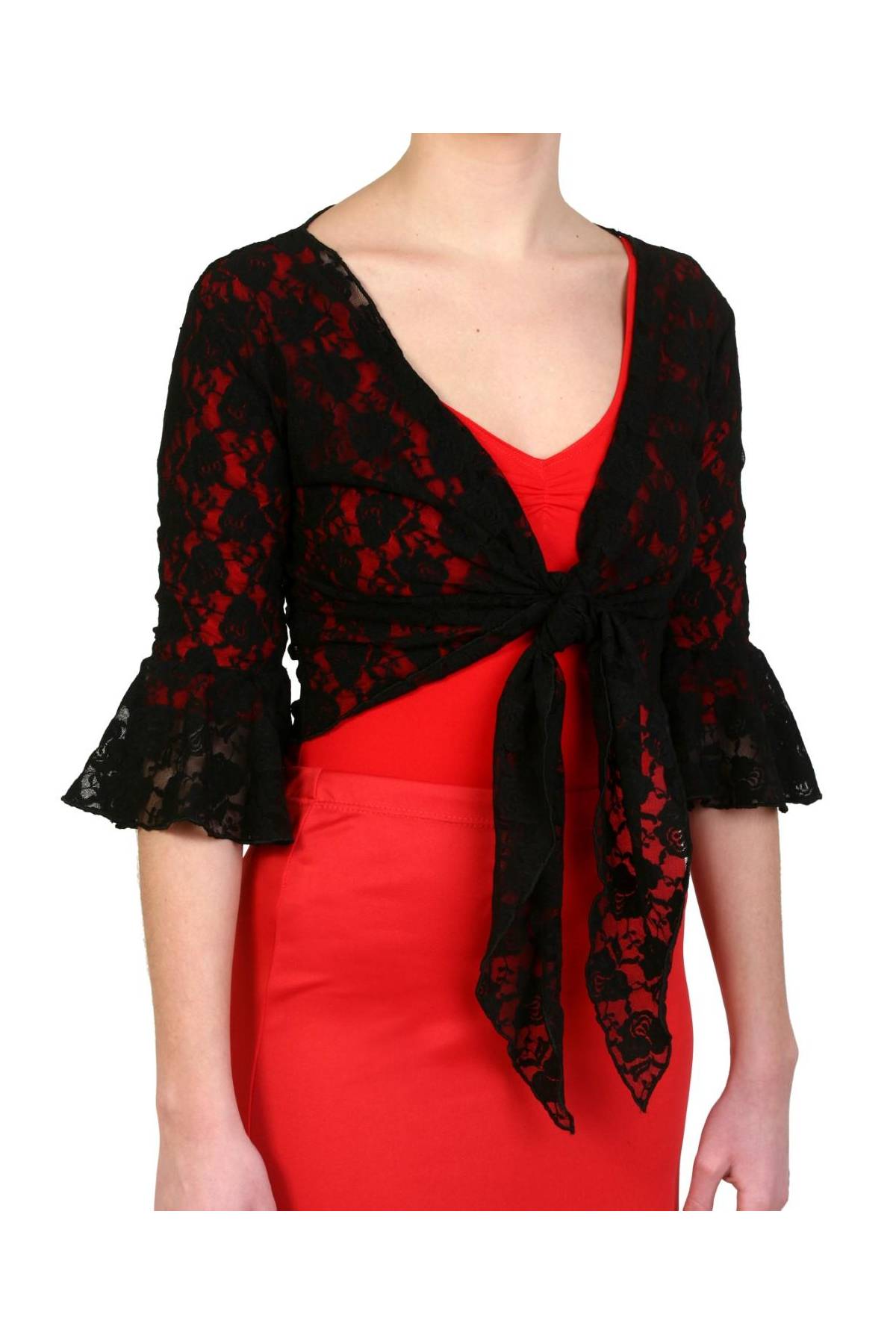 3/4 sleeve cardigan with a frill that can be tied in the front or in the back, perfect for rehearsals