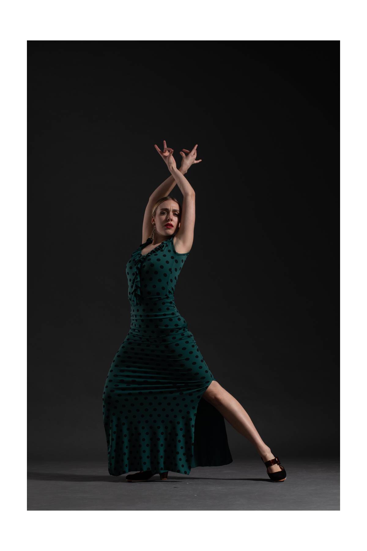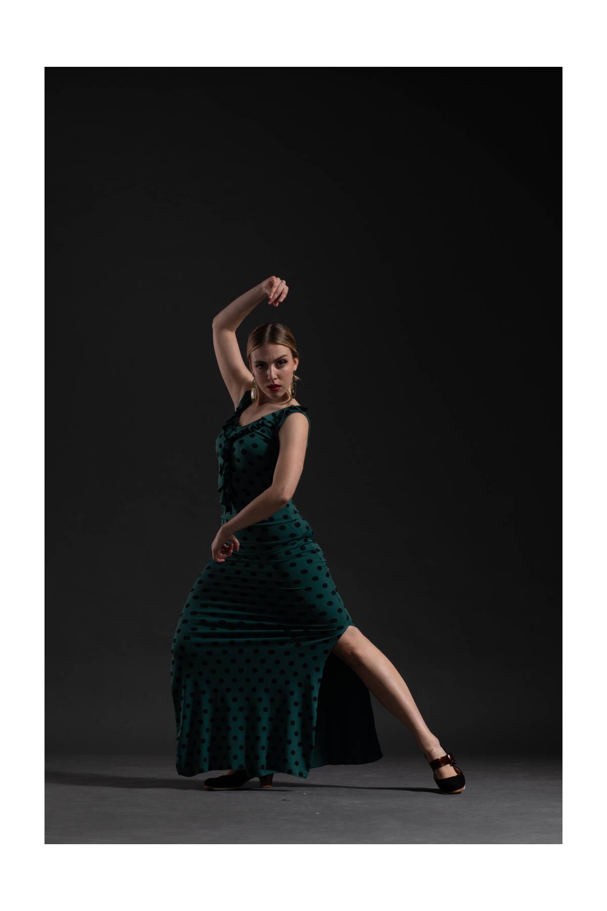 Short strappy top up to the hips with a U-neckline and frills plus frills at the center front. Neckline and armholes polished with piping.