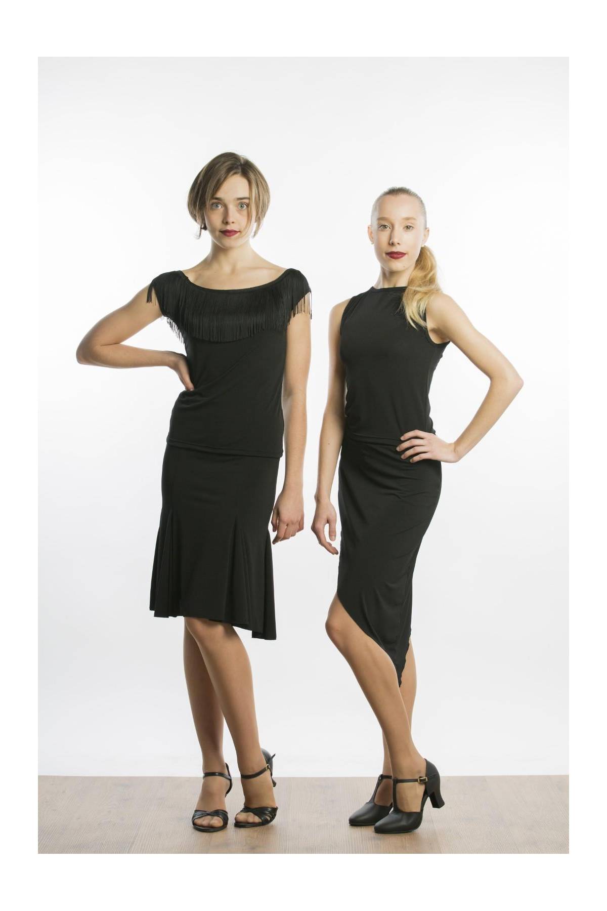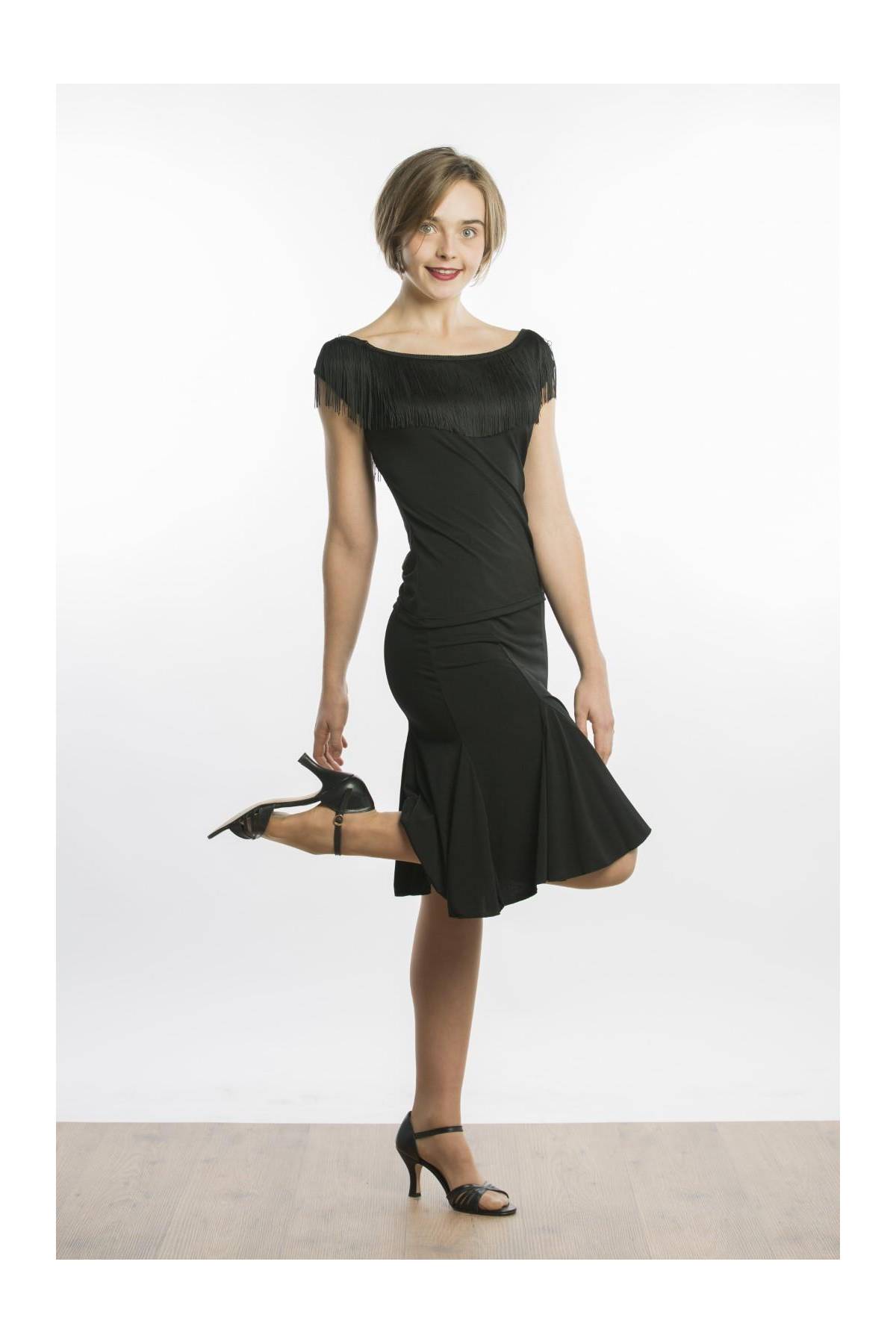 Ballroom dance skirt with 6 godets, elastic waistband, length below the knee, the godets give it a lot of flight