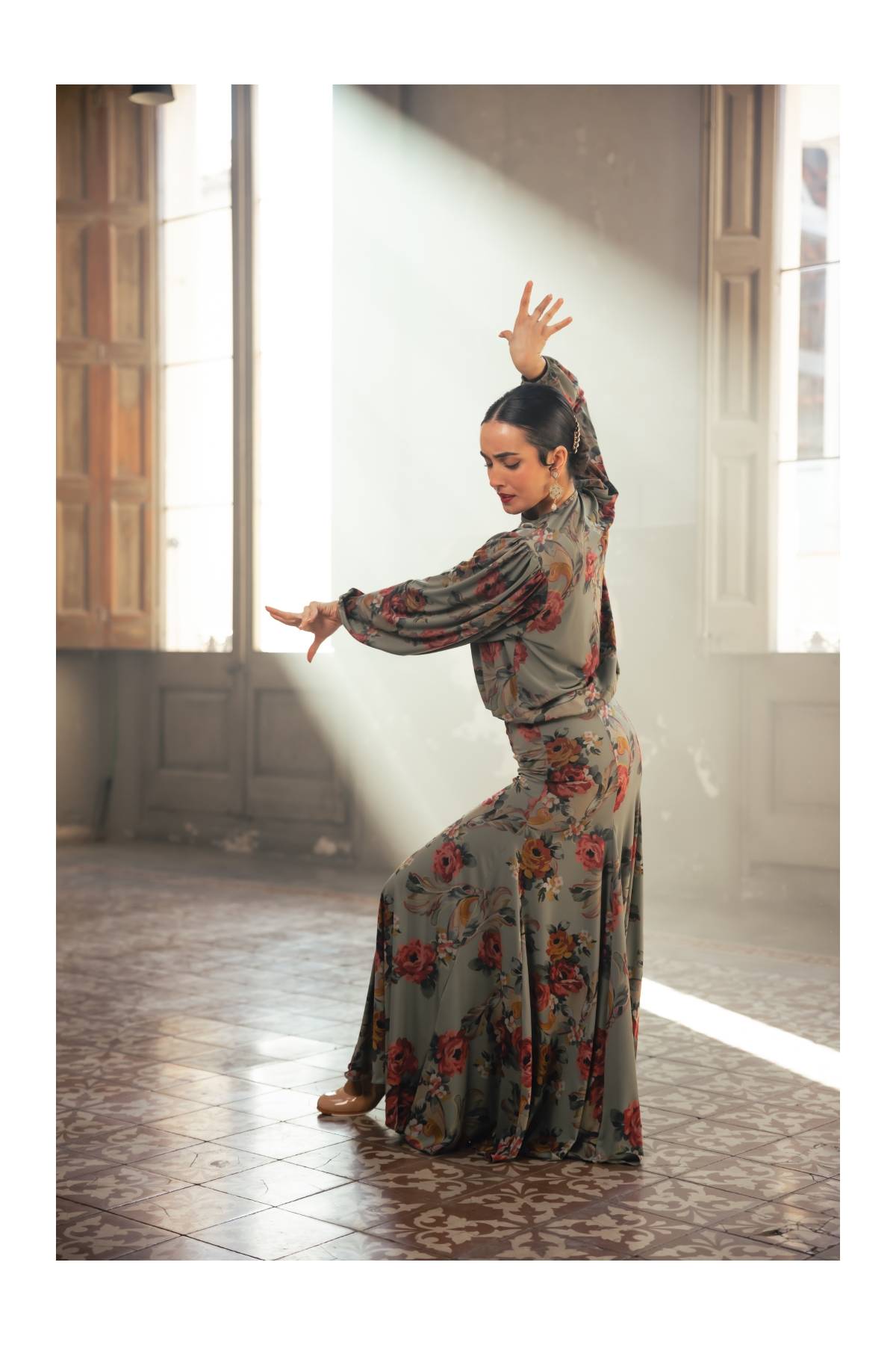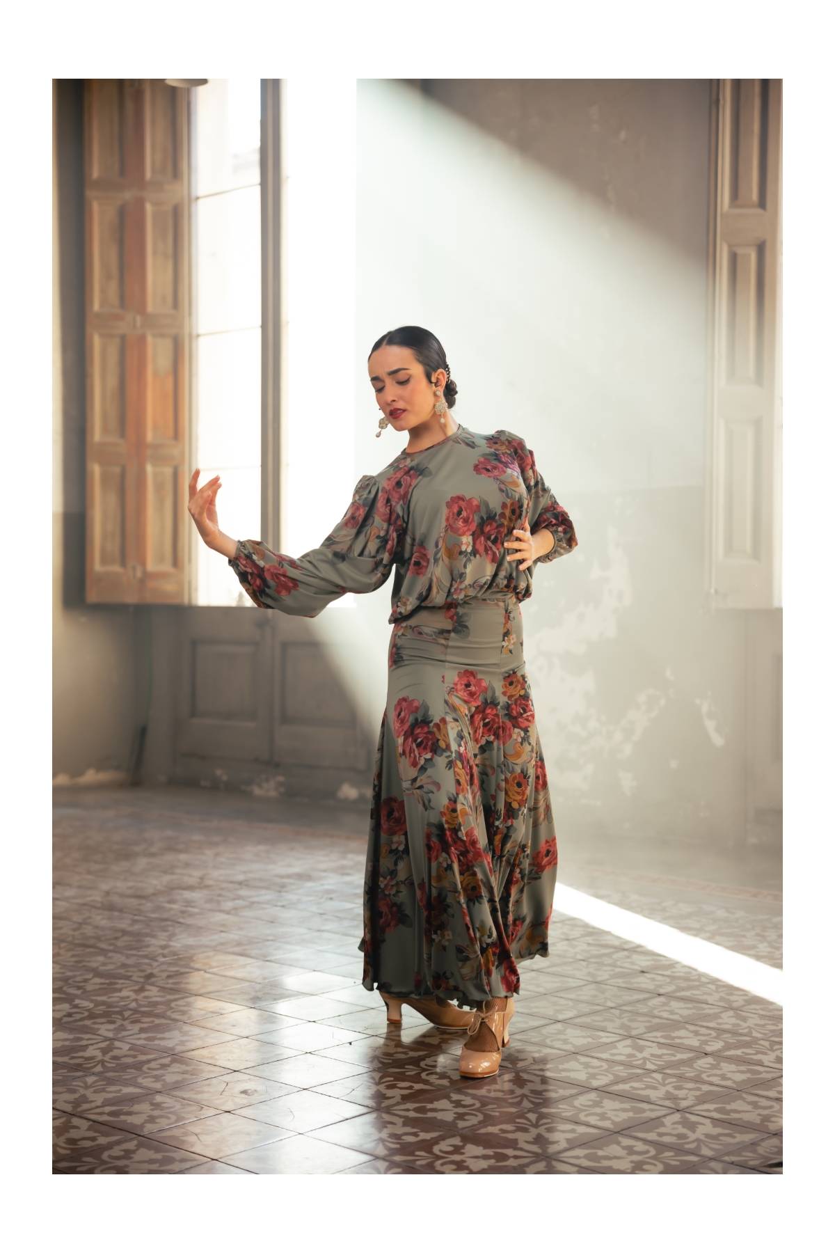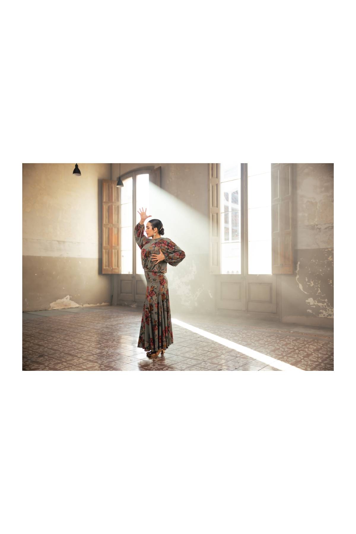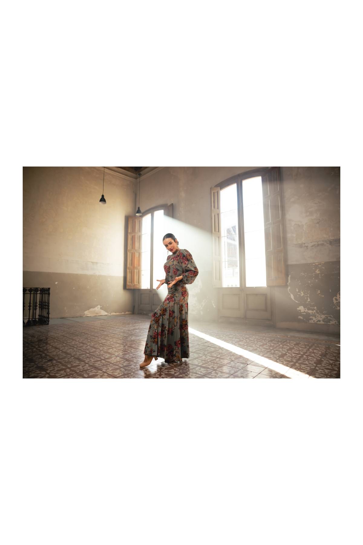 Top to mid-hip with a waistband at the hem. Long puffed sleeves gathered at the armhole with elastic at the hem. Round neckline with piping.
