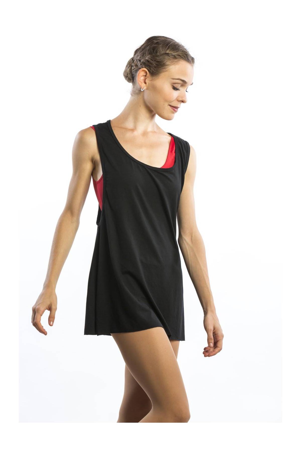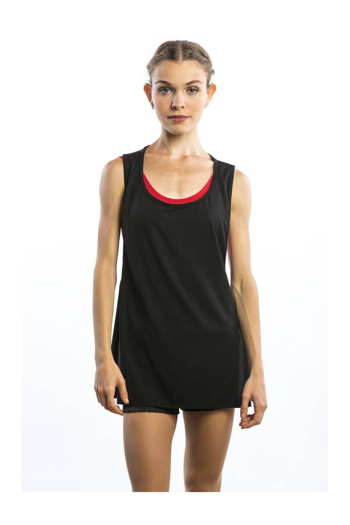 Camiseta tirantes, muy sisada, espalda tipo natación, cortes laterales, para llevar encima del maillot o top