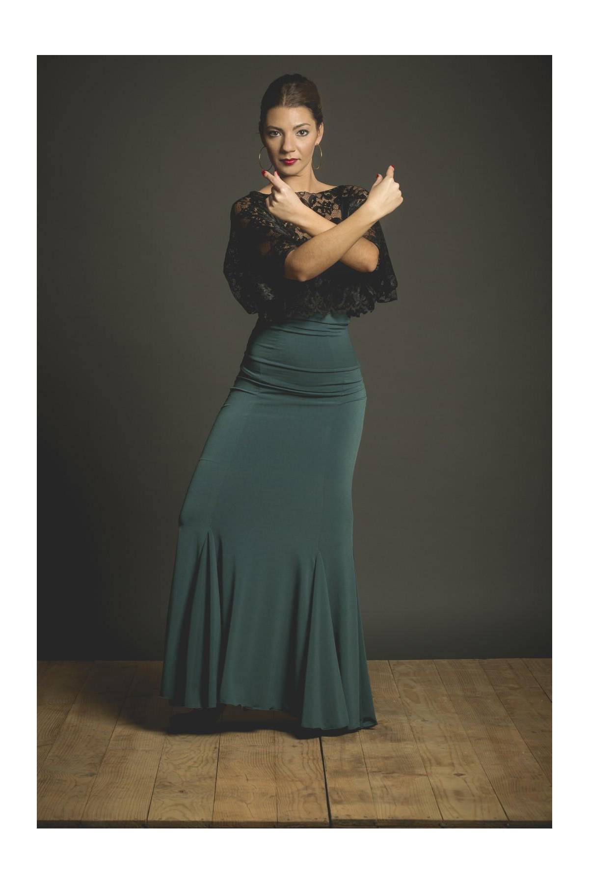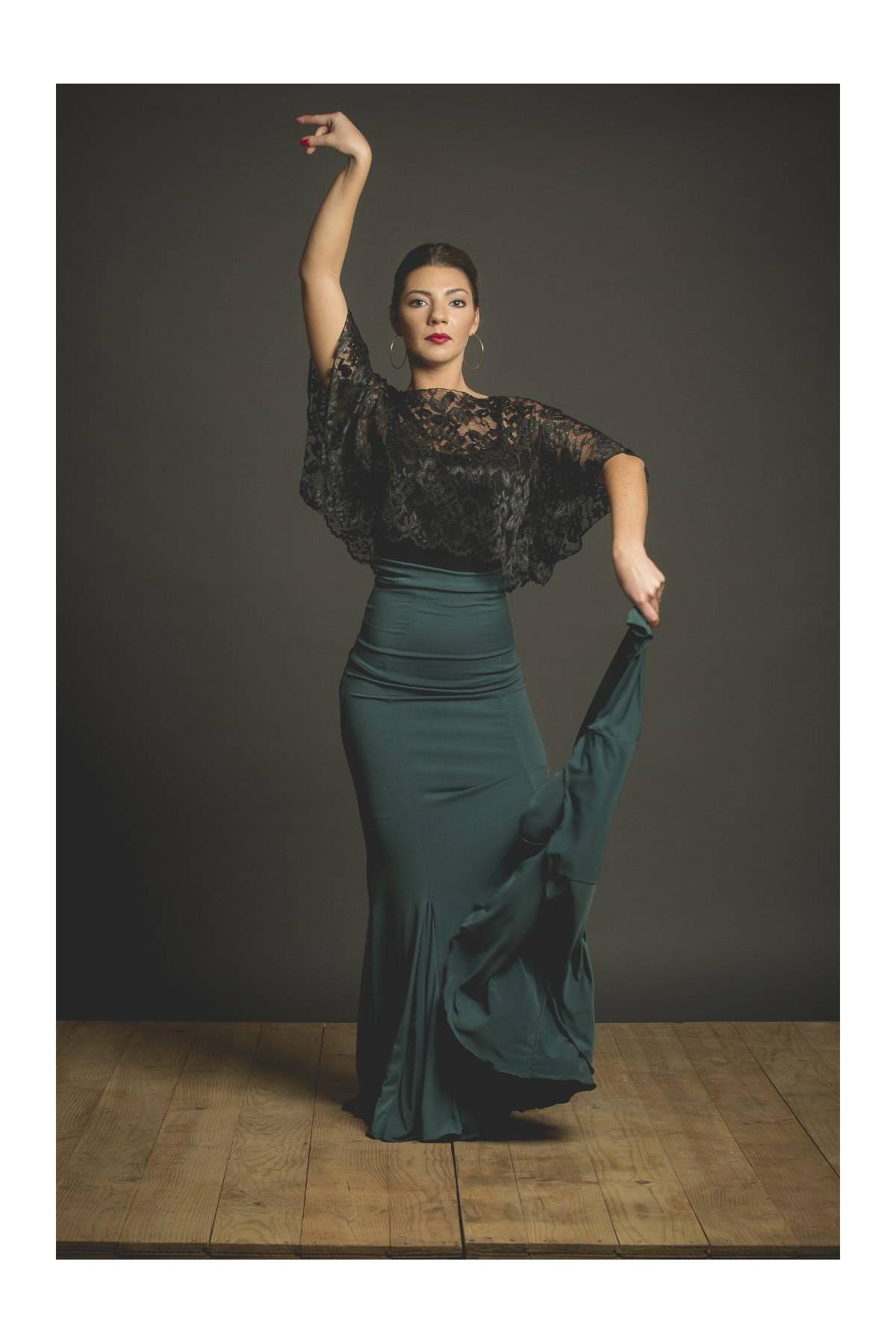 Top de encaje amplio, escote barca, largo hasta cintura, manga caída