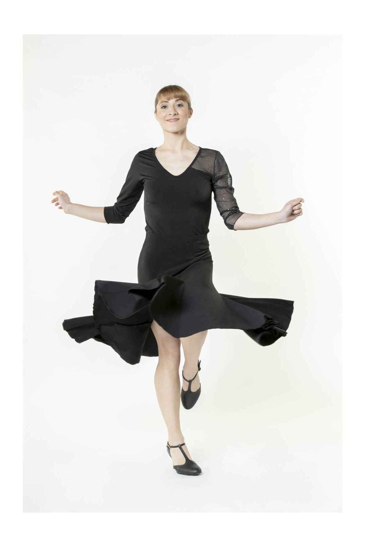 Falda corta de godets, especial baile Salón. Goma en cinturilla