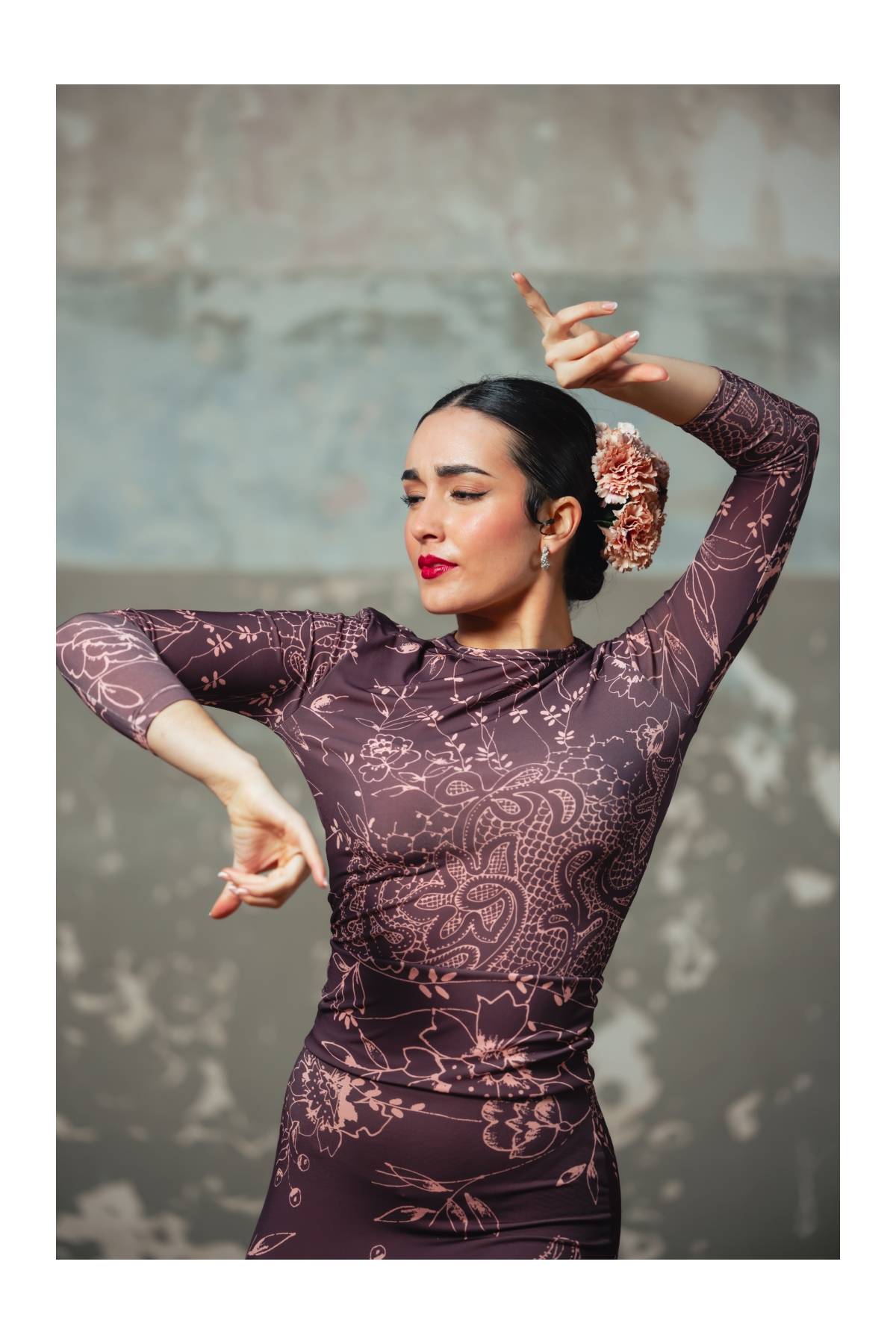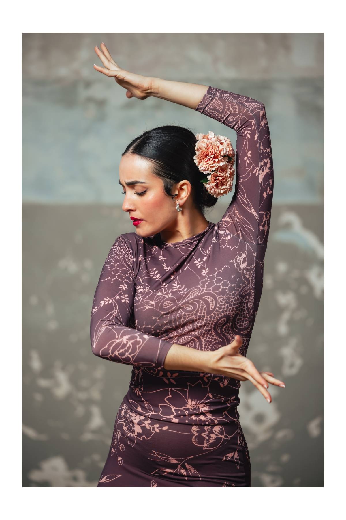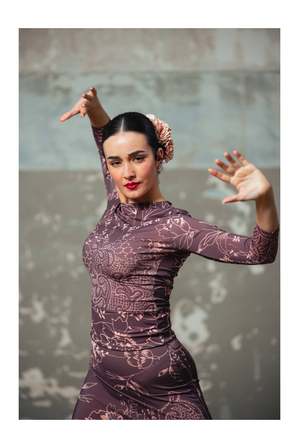 Top corto hasta 1/2 cadera con manga larga montada. Escote redondo.