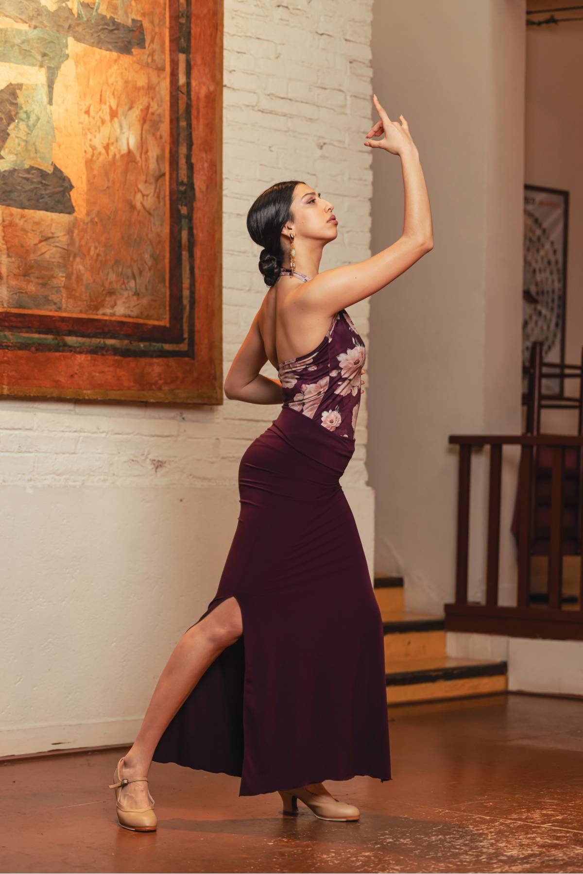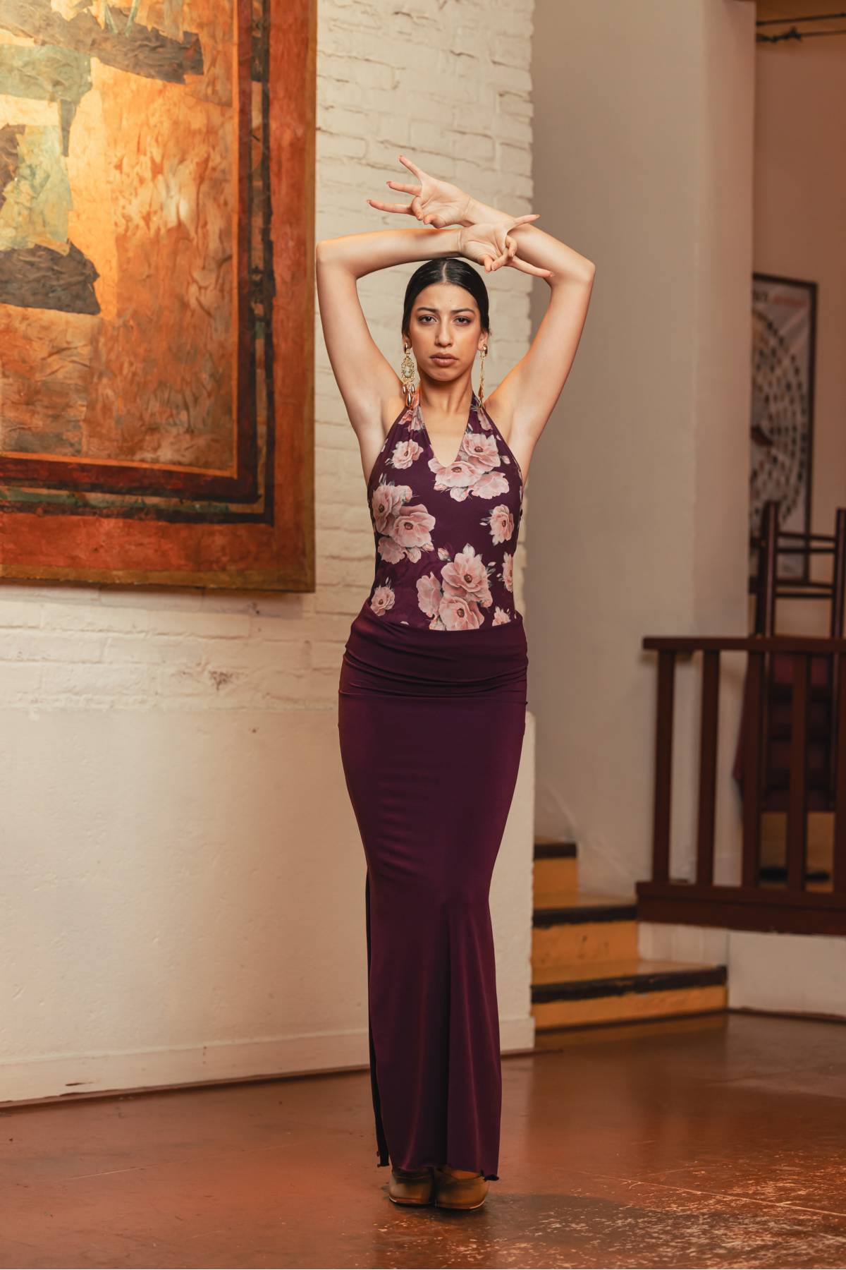 Falda larga con fajín con dos cortes laterales, especial ensayo